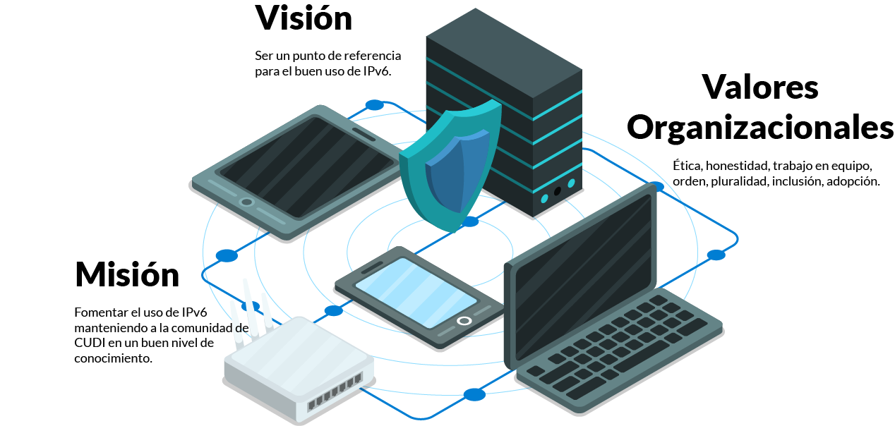 Promover y apoyar el despliegue de IPv6 entre los miembros de CUDI. Favorecer la introducción y uso del IPv6 en las redes de los miembros de RedCUDl, en servicios de producción para su uso efectivo en forma transparente por parte de los usuarios finales.